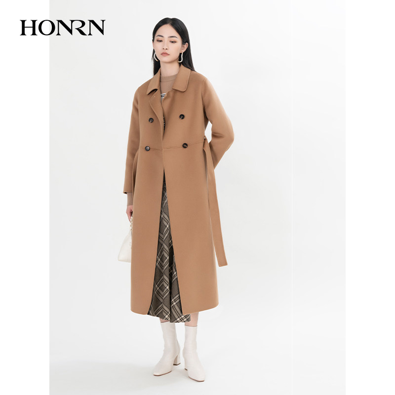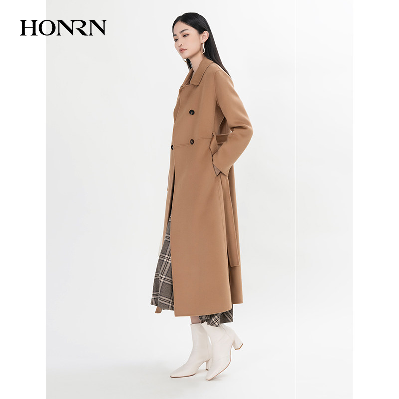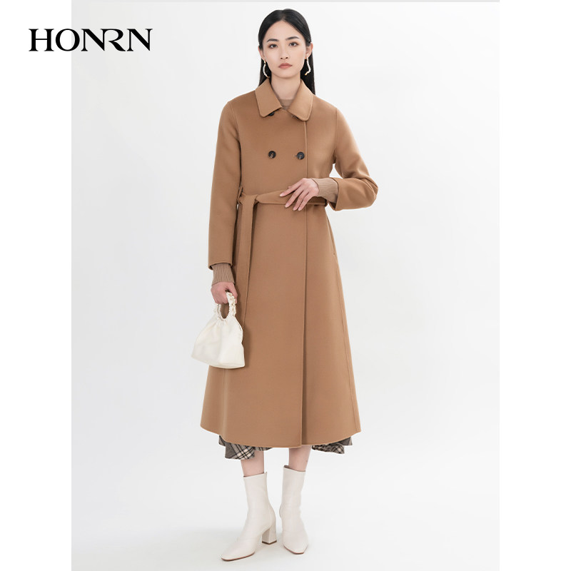 HONRN/红人中长款系带收腰显瘦羊毛呢子大衣外套女冬季HI59OD082