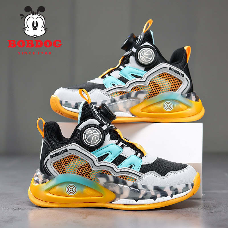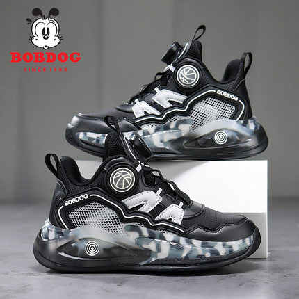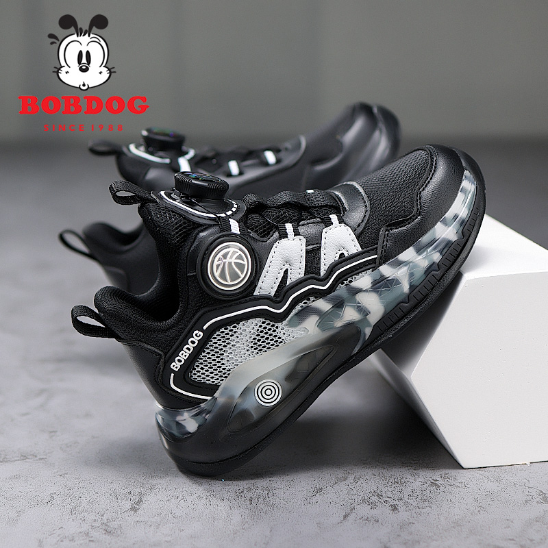 巴布豆男童鞋篮球鞋2025新款秋冬皮面防水小学生男孩子儿童运动鞋