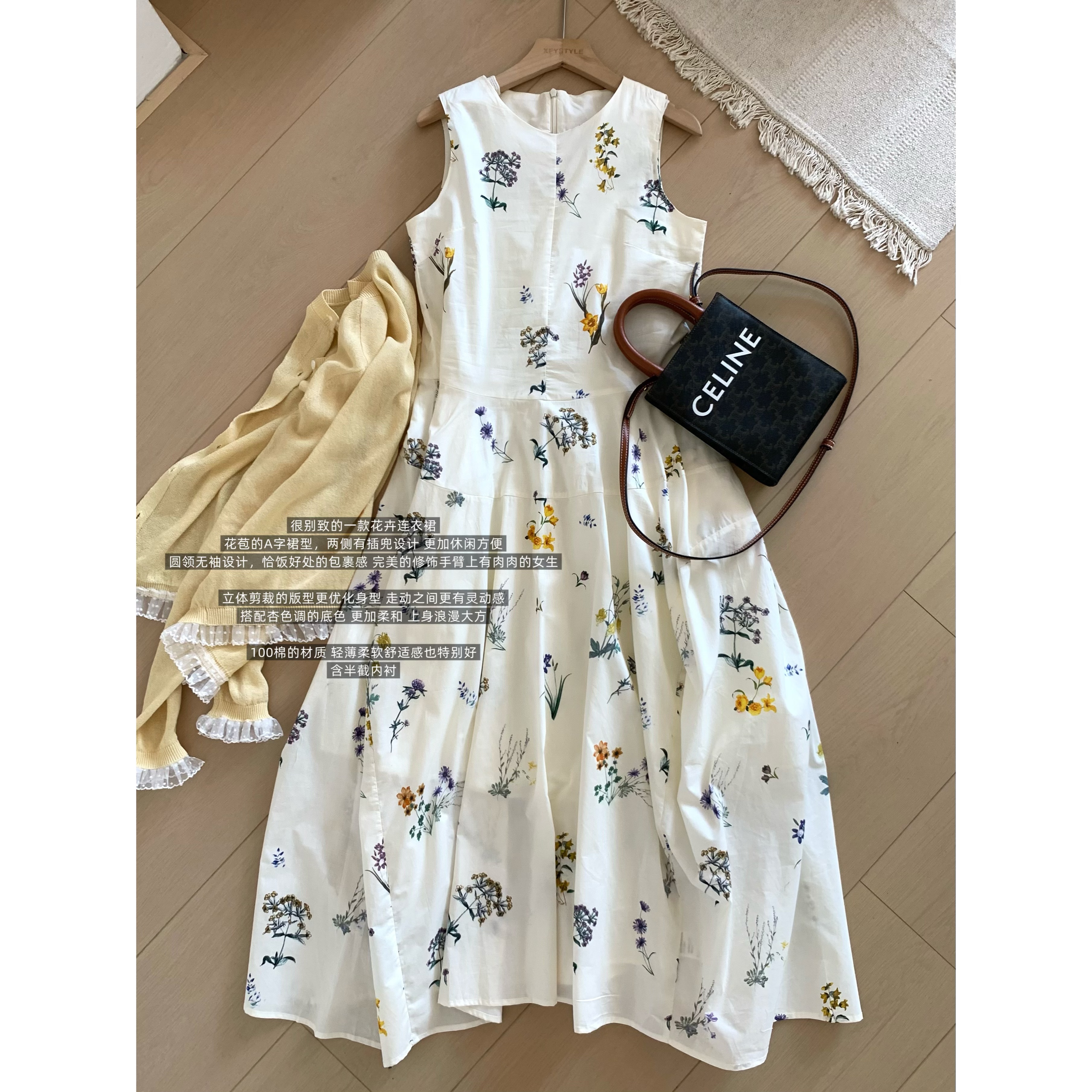 XFYSTYLE_莫奈花园 设计感小众A字长款圆领无袖花苞背心连衣裙女