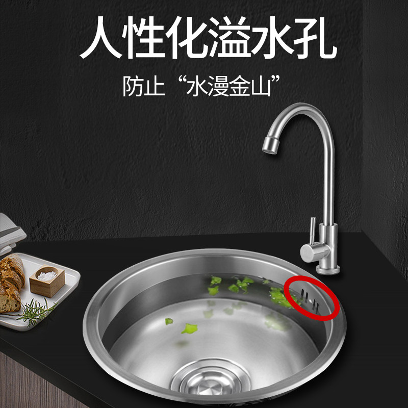 304不锈钢圆形水槽单槽 吧台下盆园型厨房洗菜盆小号加厚洗碗手池