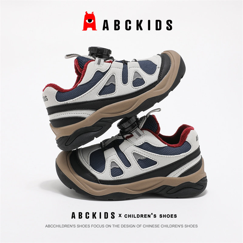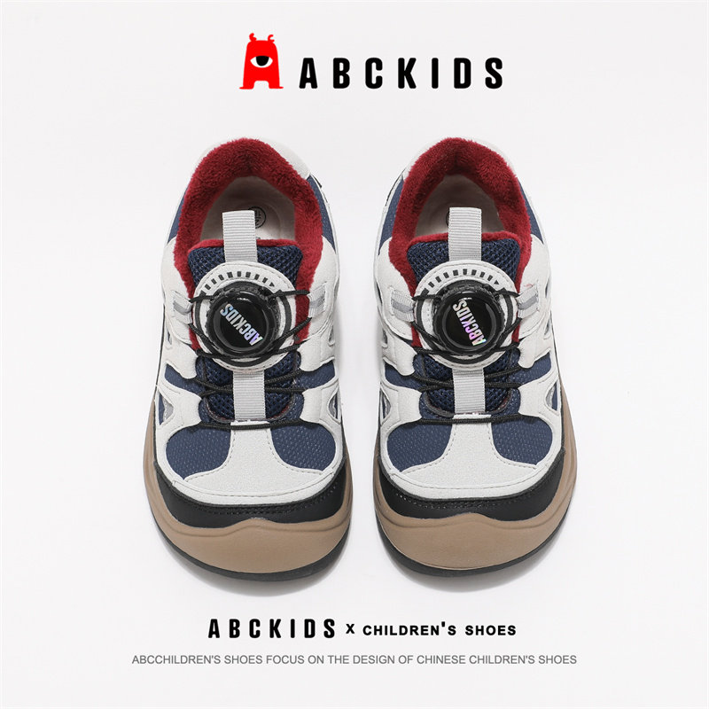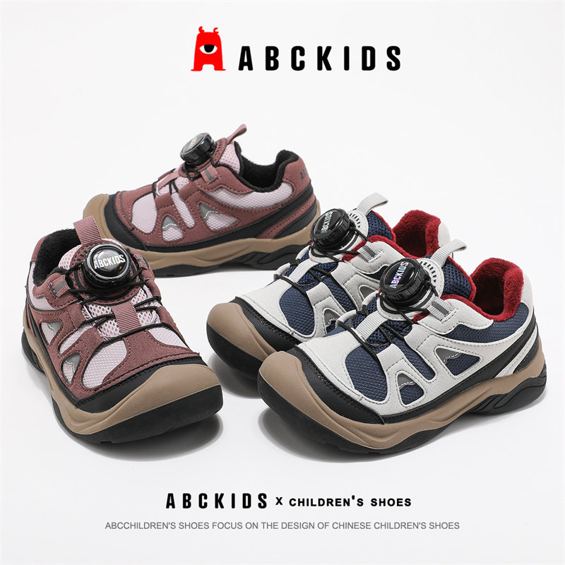 Abckids童鞋冬季新款男女童加绒保暖户外鞋包头休闲鞋旋钮运动鞋