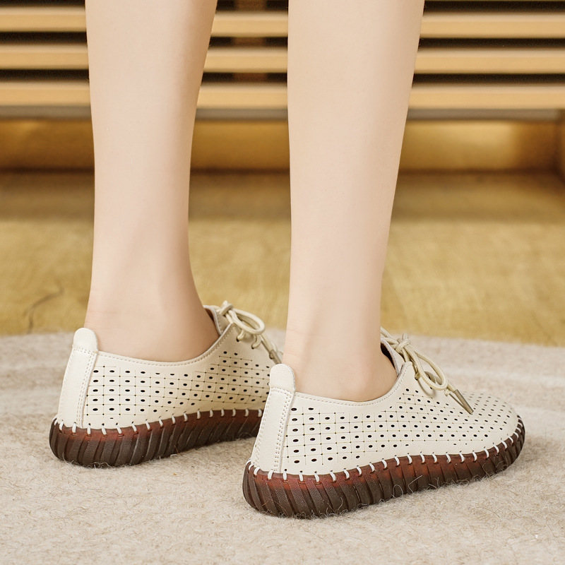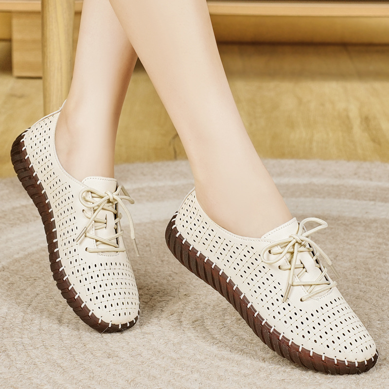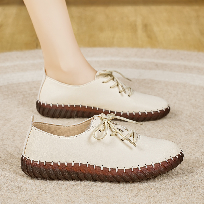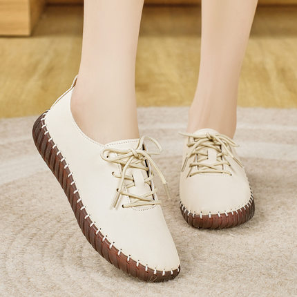 外贸女鞋软底软面系带单鞋圆头春秋舒适百搭休闲鞋牛筋底妈妈女士