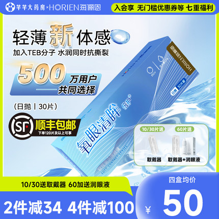 30片海俪恩日抛隐形近视眼镜透明一次性隐型眼睛盒官网旗舰店正品