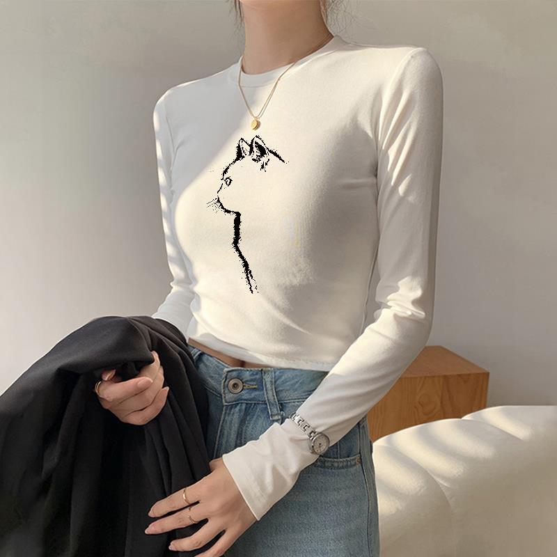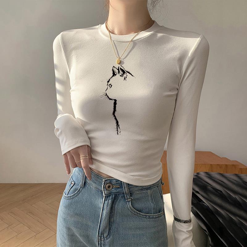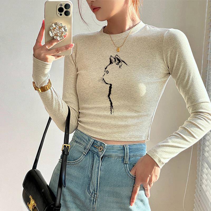 黑色圆领长袖t恤女2025秋新款百搭打底衫女新款短款露脐上衣0929u