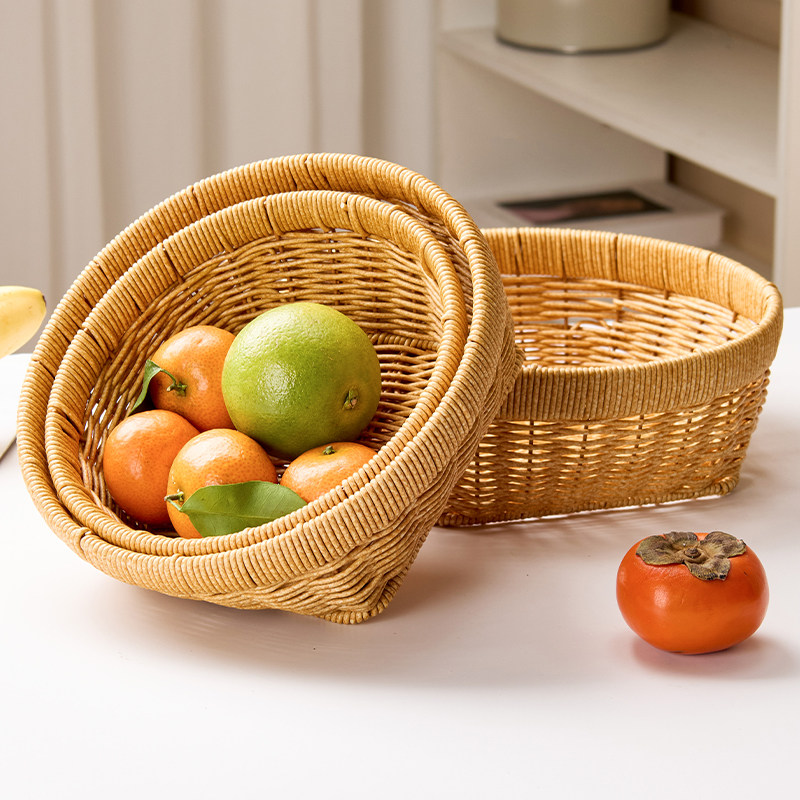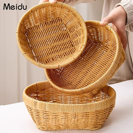 果篮水果收纳篮客厅家用仿藤编织篮装饰储物篮装水果馒头筐鸡蛋筐