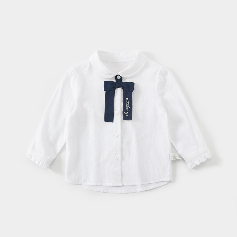 宝宝春装 1-3岁小女童白色长袖衬衫婴幼儿纯棉娃娃衫女宝洋气上衣