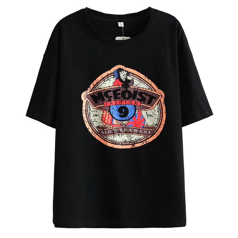 大码女装夏季新款百搭显瘦印花短袖T恤胖妹妹mm时尚宽松上衣