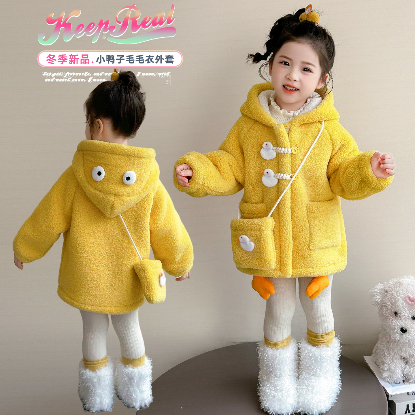 女童加绒外套秋冬款2025新款儿童冬季加厚毛毛衣大衣女宝宝冬装潮