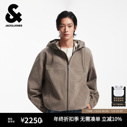 杰克琼斯冬季新款时尚潮流百搭拉链连帽夹克休闲宽松皮衣外套男装