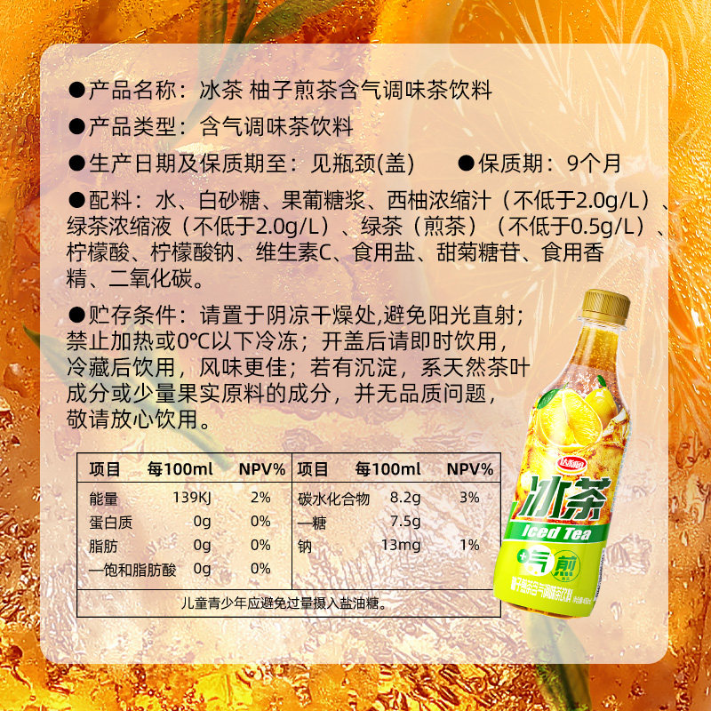 【新品】达利园冰茶柚子煎茶480ml整箱囤货装夏日下午茶清凉饮料