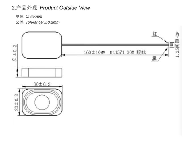2030腔体-4Ω3W/8Ω2WBOX蓝牙音响扬声器安防喇叭 带1.25端子
