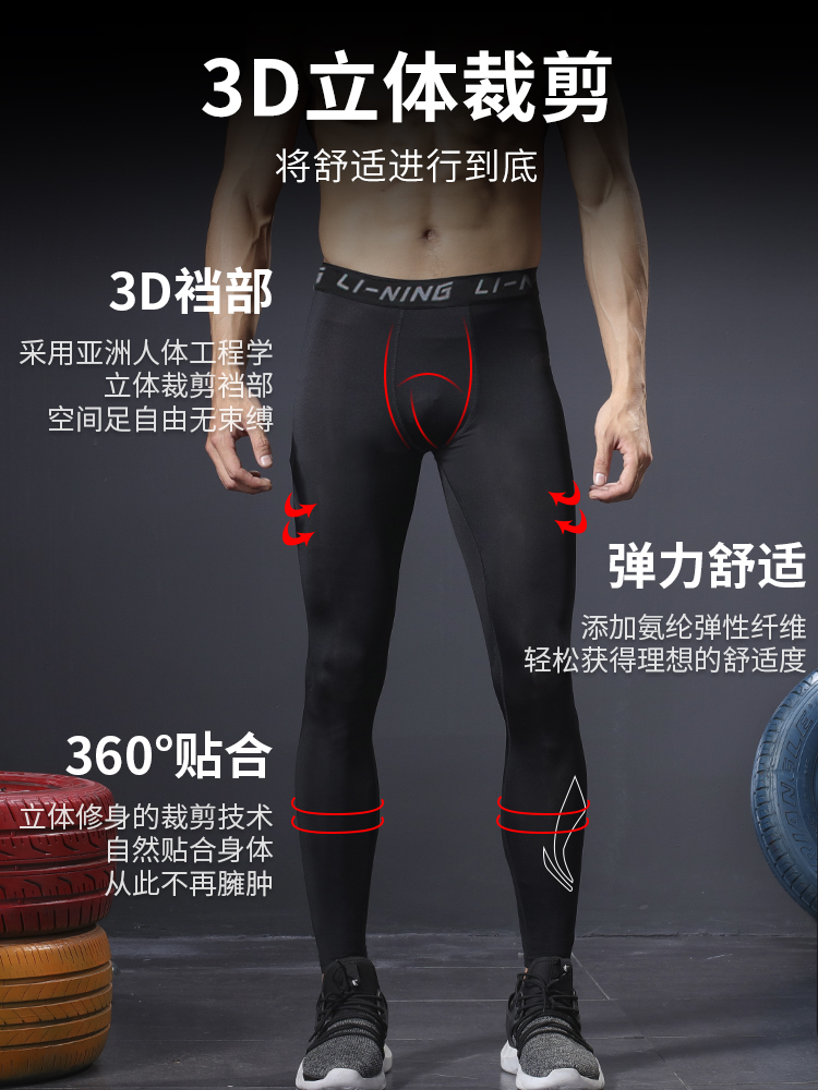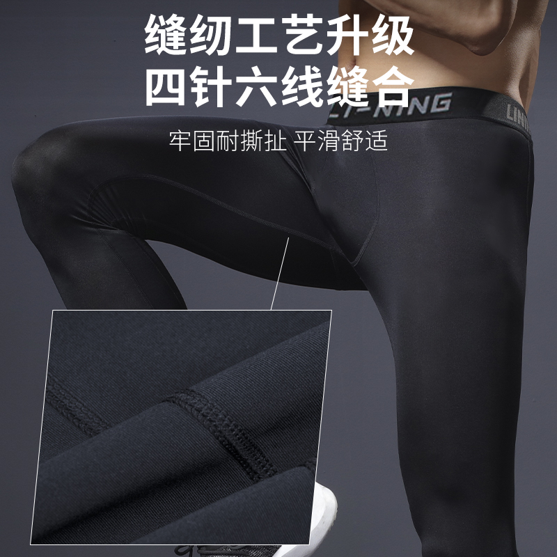李宁健身裤男款压缩紧身高弹裤篮球跑步运动透气男士训练打底长裤