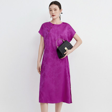 2025年夏装Outlets专柜 高端KB系列复古简约气质中长裙直筒连衣裙