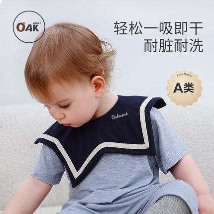 Oak mont宝宝口水巾婴儿a类围嘴透气薄款防水快干海军风导湿围脖