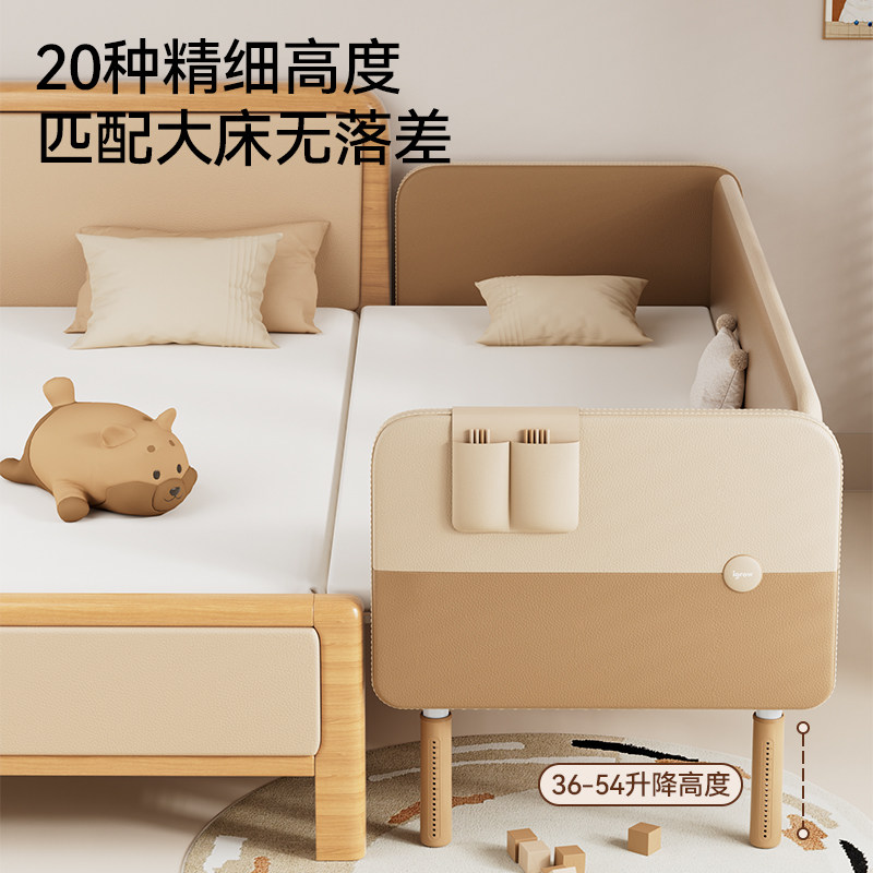 爱果乐儿童加宽床边小床婴儿拼接床男女孩软包带护栏拼接大床宝宝