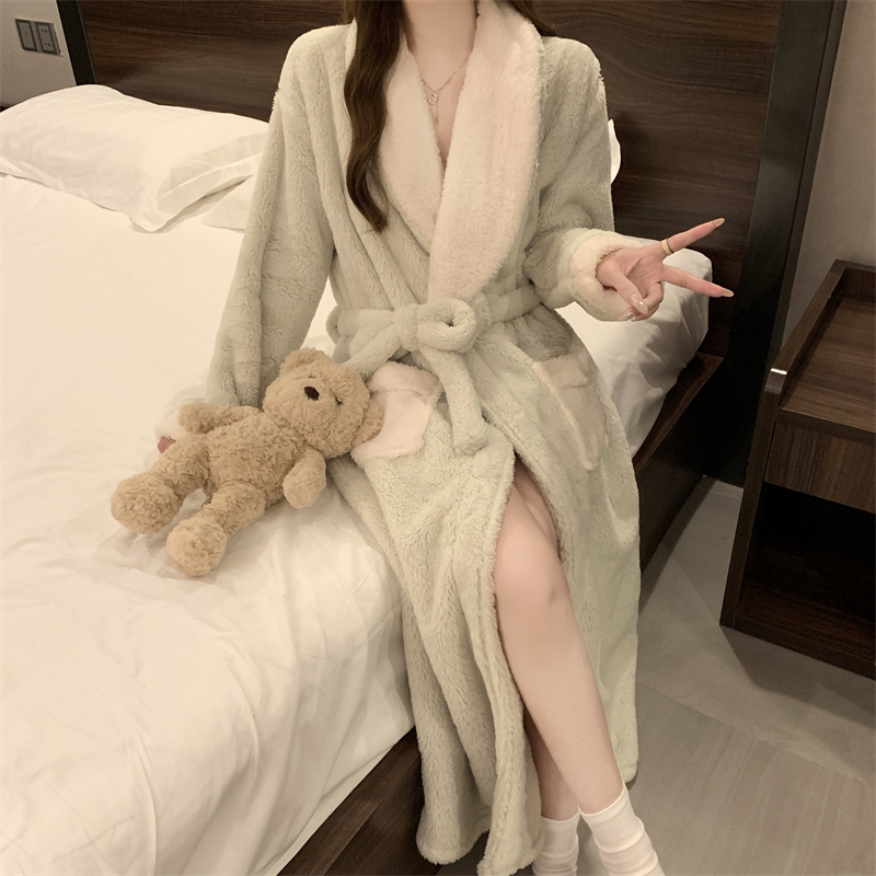 珊瑚绒睡袍女款秋冬季甜美公主风加绒加厚中长款法兰绒睡衣女浴袍