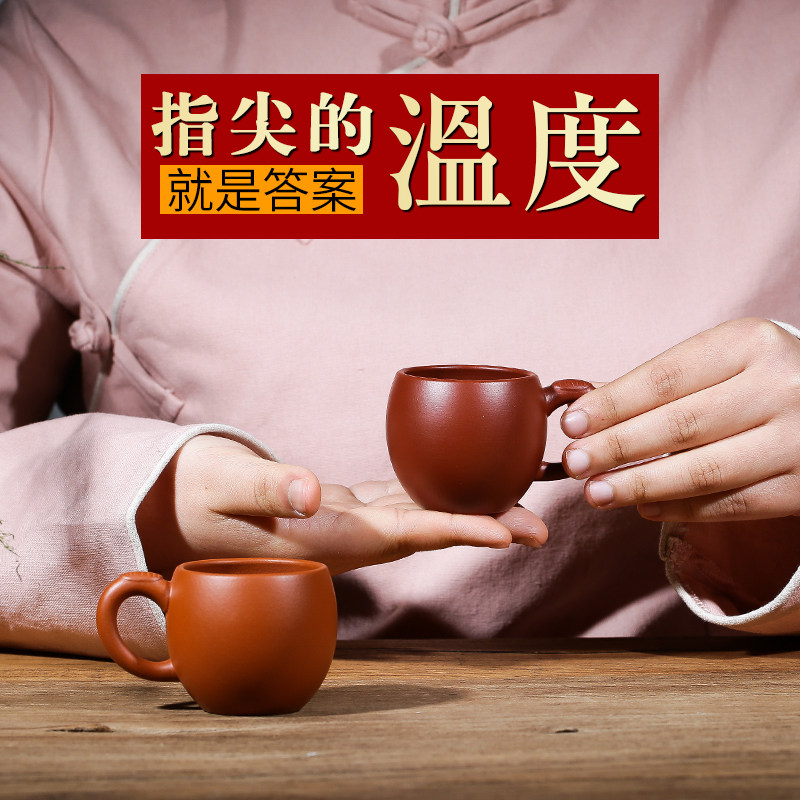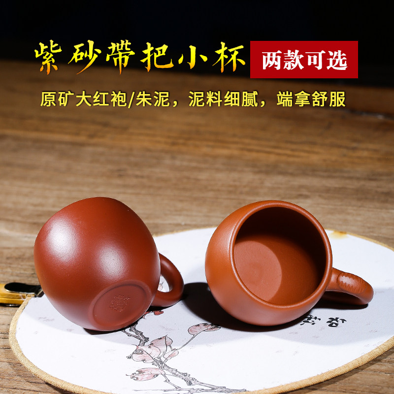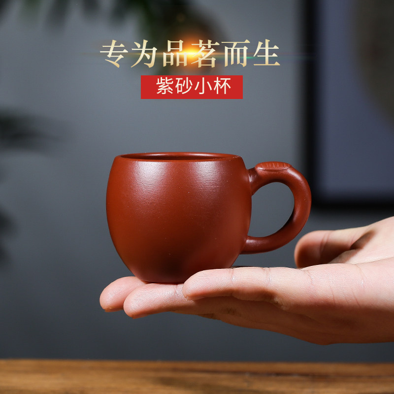小号带把纯手工朱泥宜兴紫砂茶杯