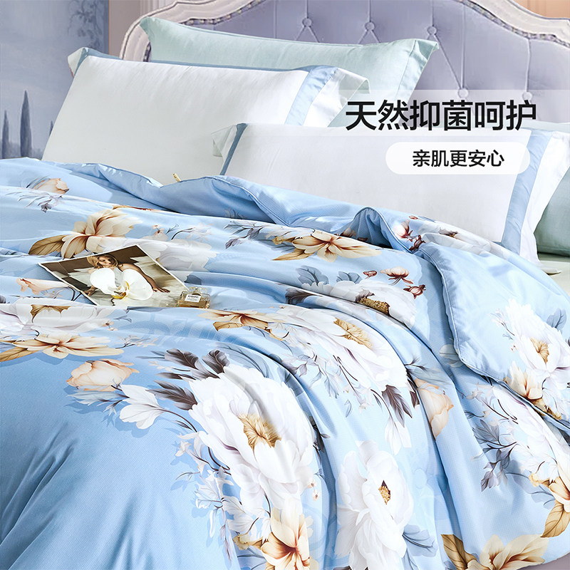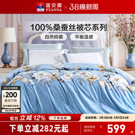 富安娜桑蚕丝被冬厚被子春秋被四季被蚕丝空调被二合一被芯子母被