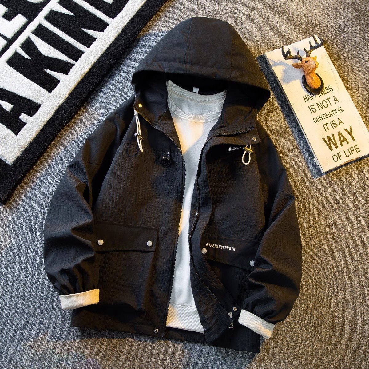 耐克顿夹克外套男款秋冬季新款潮流美式撞色拼接连帽帅气冲锋衣潮