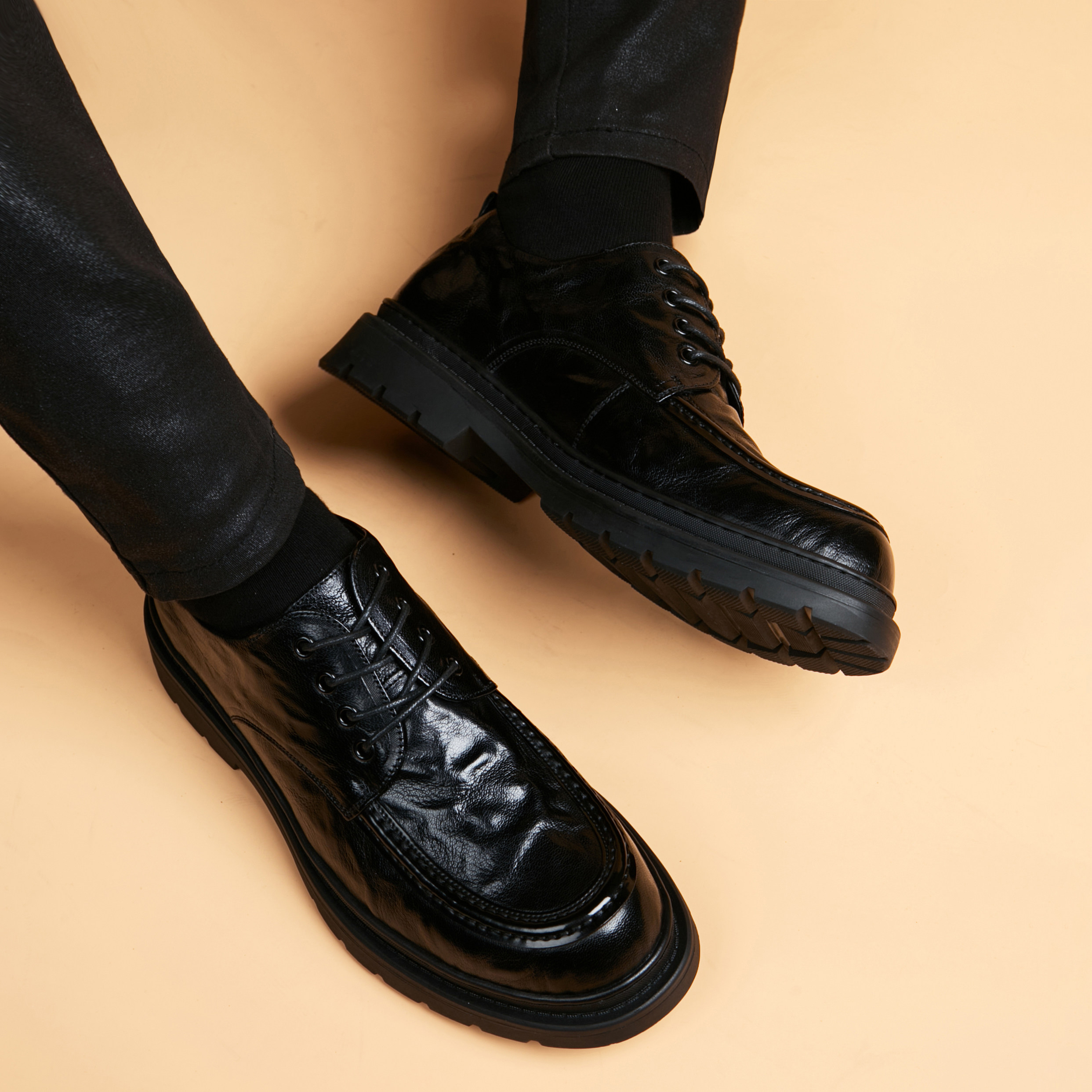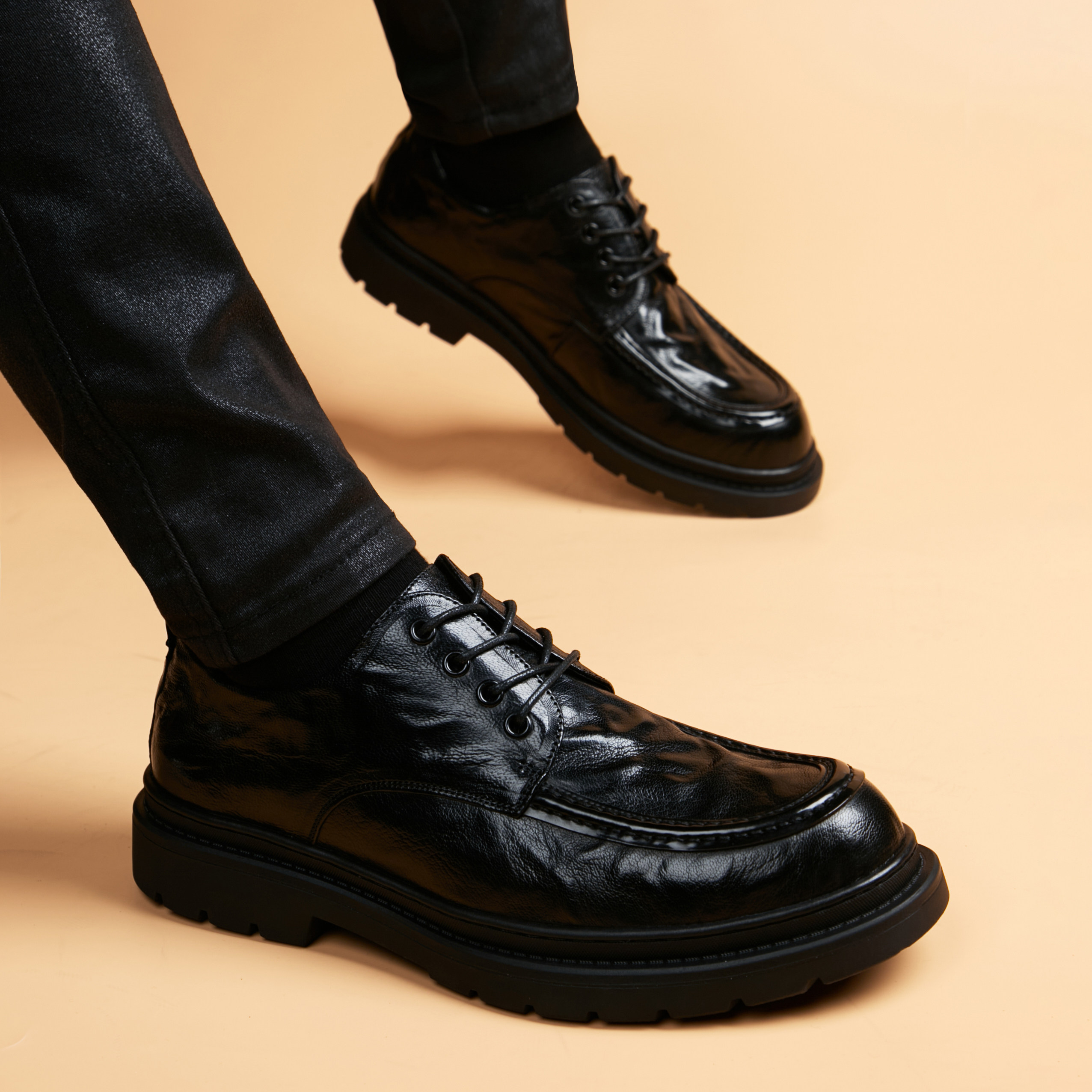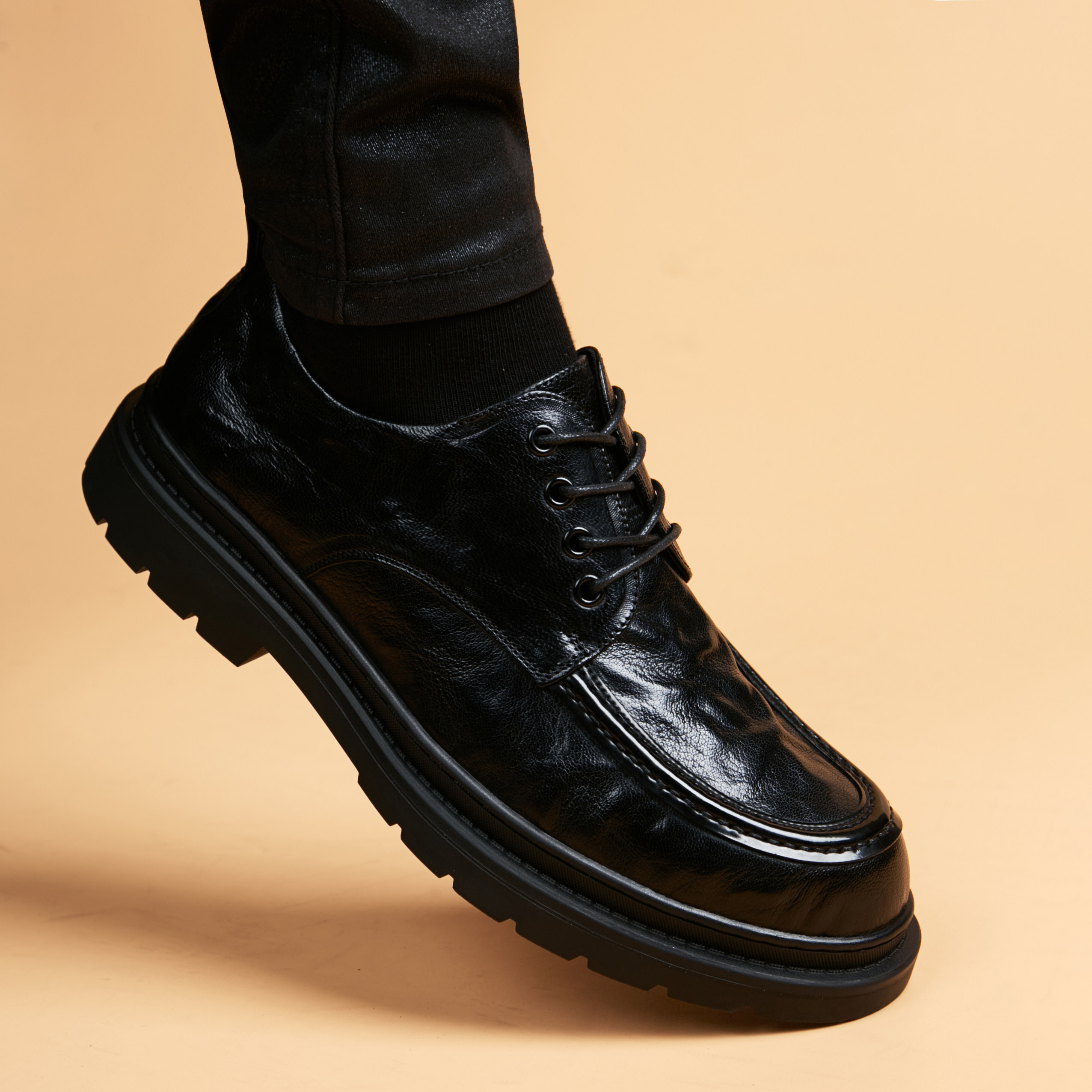 秋季商务休闲皮鞋男真皮正装英伦系带韩版潮流百搭透气软羊皮男鞋