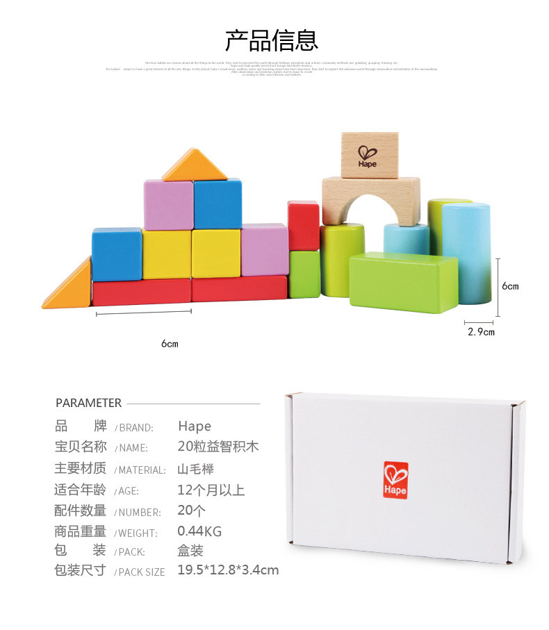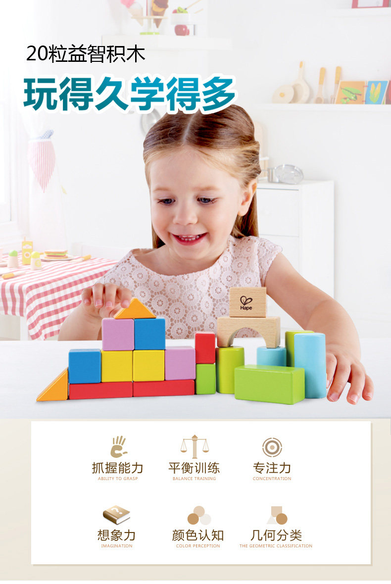 Hape木制积木拼搭早教玩具