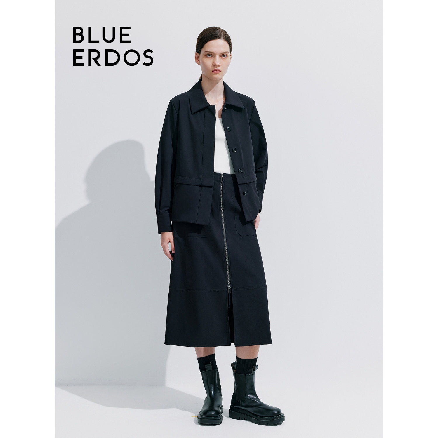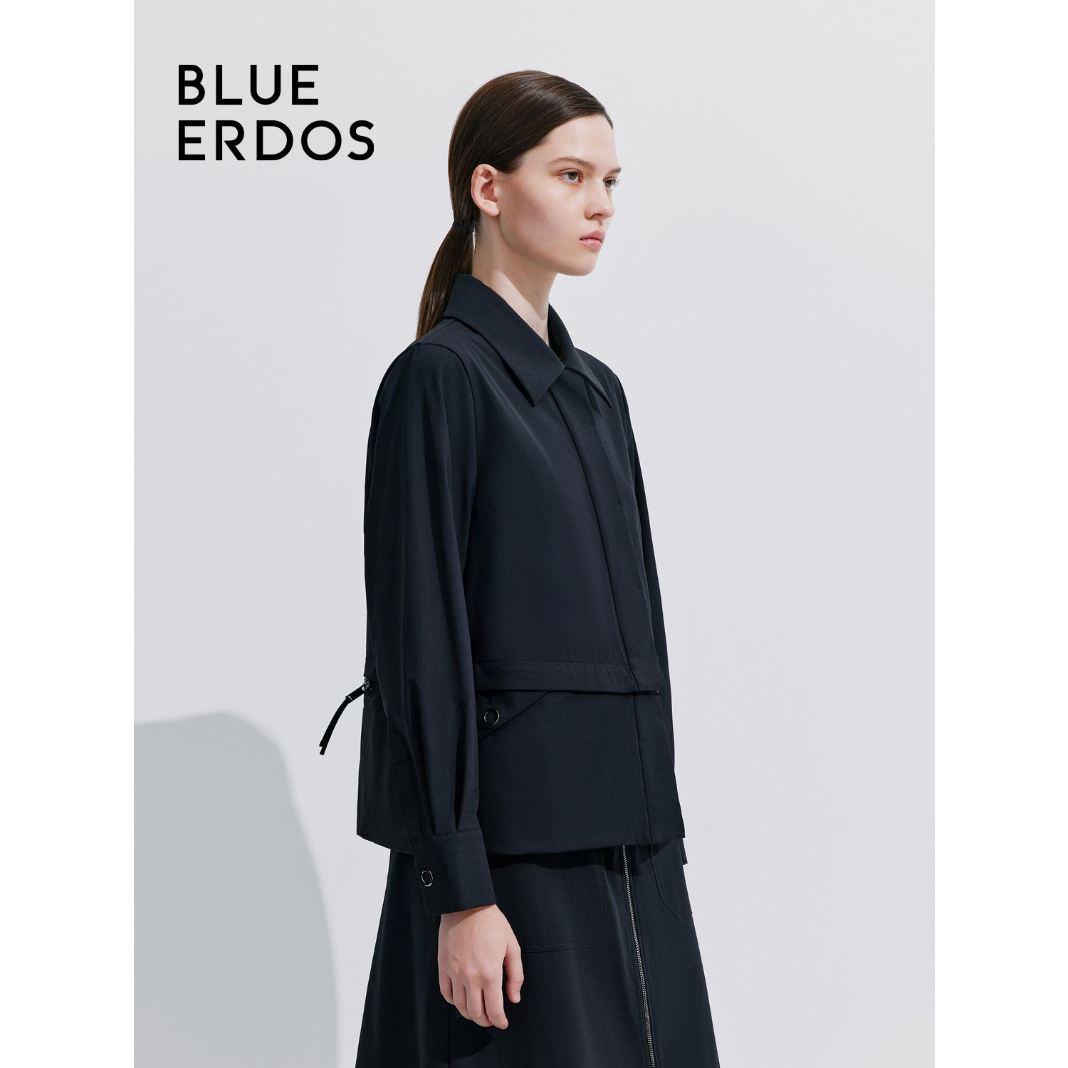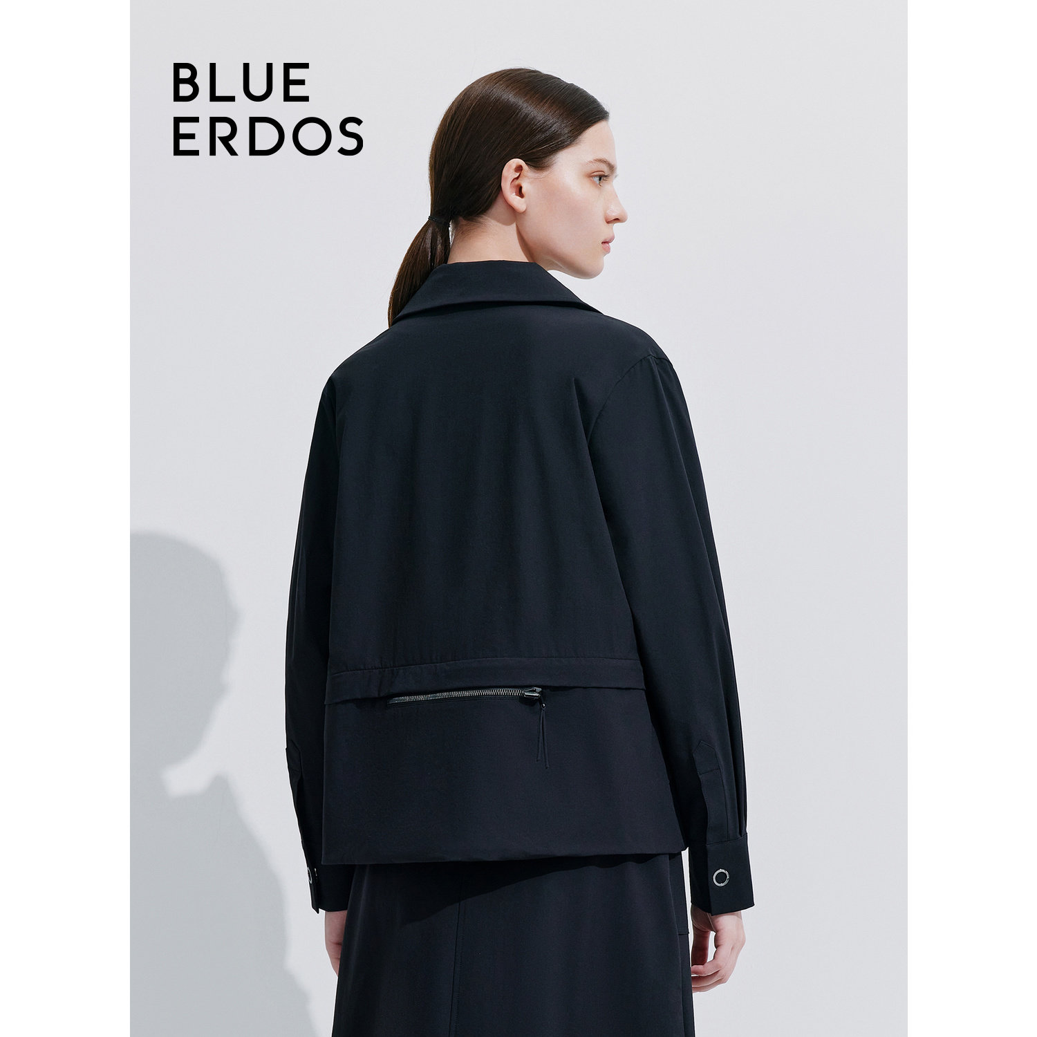 BLUE ERDOS简约翻领弹力尼龙混纺夹克外套女B245J4011