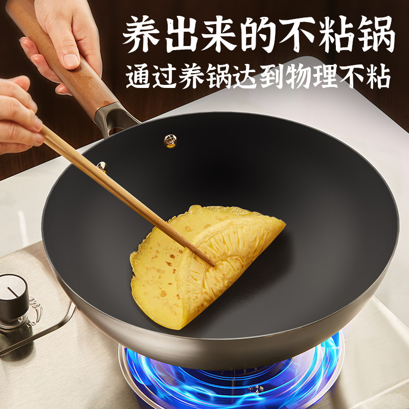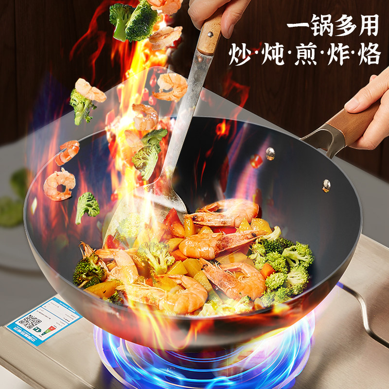 利仁铁锅炒锅家用炒菜锅老式平底锅燃气灶电磁炉通用无涂层不粘锅