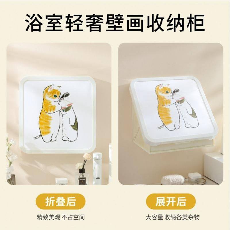 浴室壁画收纳柜放衣服卫生间壁挂折叠收纳箱防水免打孔置物架