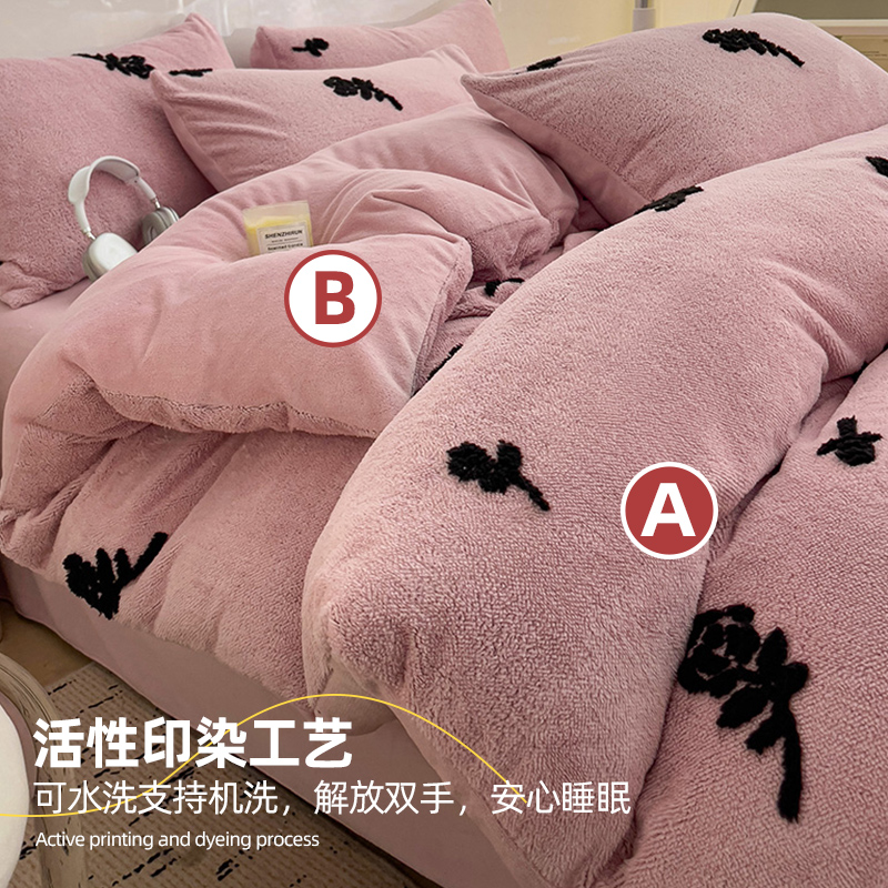 公主风牛奶绒四件套秋冬季舒棉绒加绒被套法兰绒床单新款床上用品