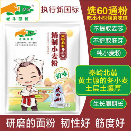 【新国标】老牛面粉关中冬小麦粉10/20/50斤家用中筋无添加面粉