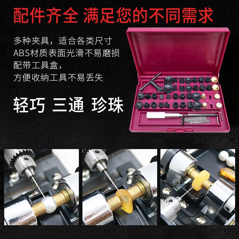全力道珍珠打孔机台式电动佛珠钻孔机圆珠桶珠钻眼器玉石珠子工具