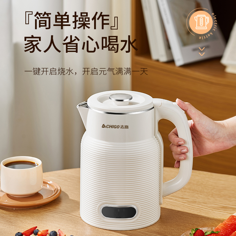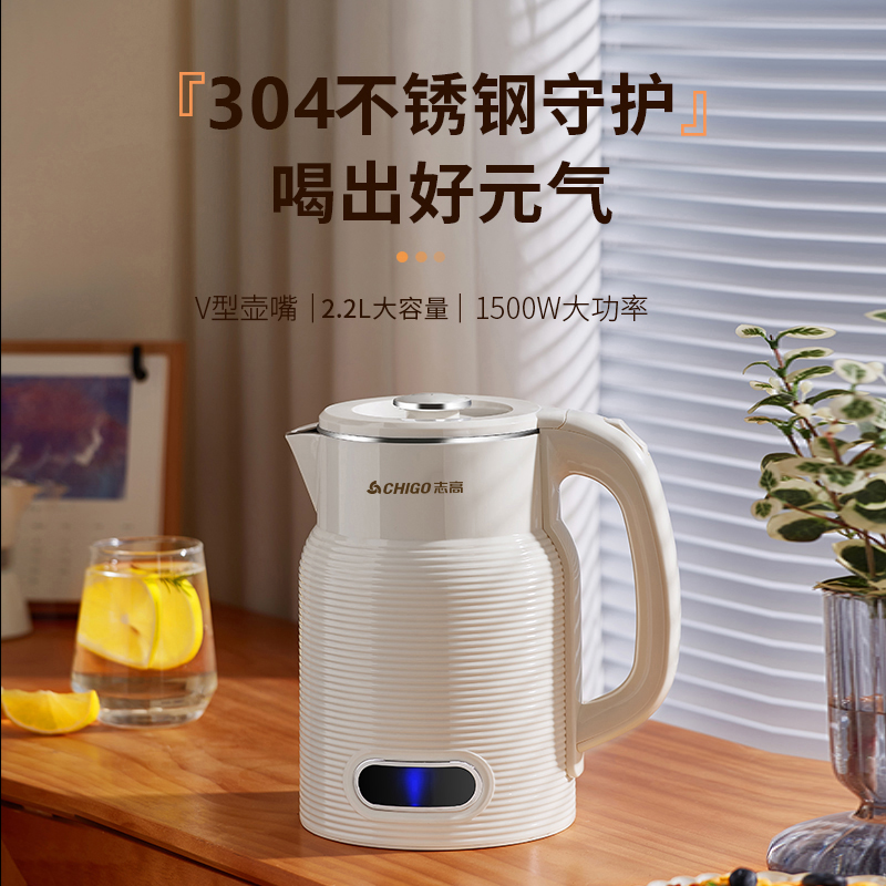 志高电热水壶家用食品级304不锈钢烧水壶保温一体大容量煮开水器