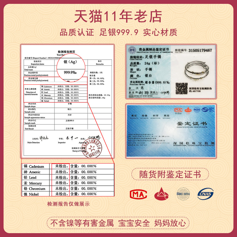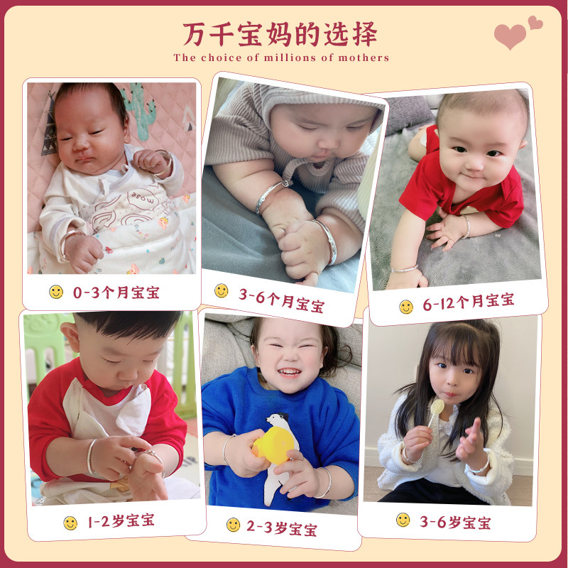 银手镯婴儿9999纯银鼠牛宝宝银镯子儿童男女小孩满月银饰礼物周岁