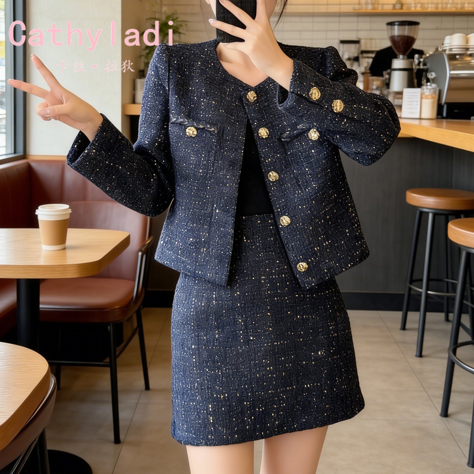 CATHYLADI千金高级感小香风套装2026年冬季轻奢外套半身裙两件套