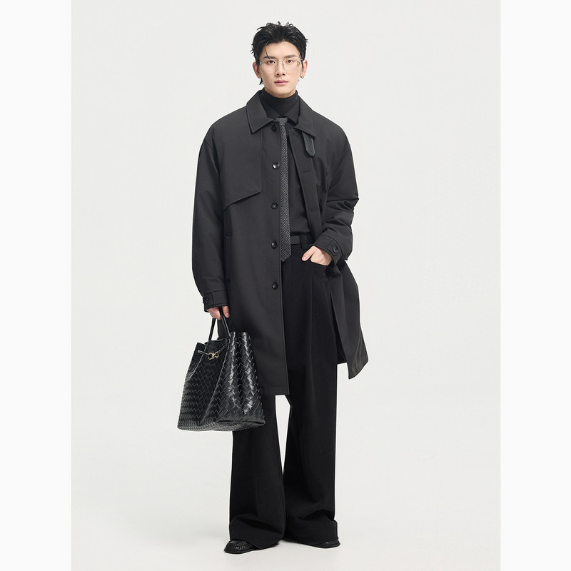 伯爵卓尔马肯翻领羽绒风衣男冬季中长款派克服可拆卸鹅绒内胆外套