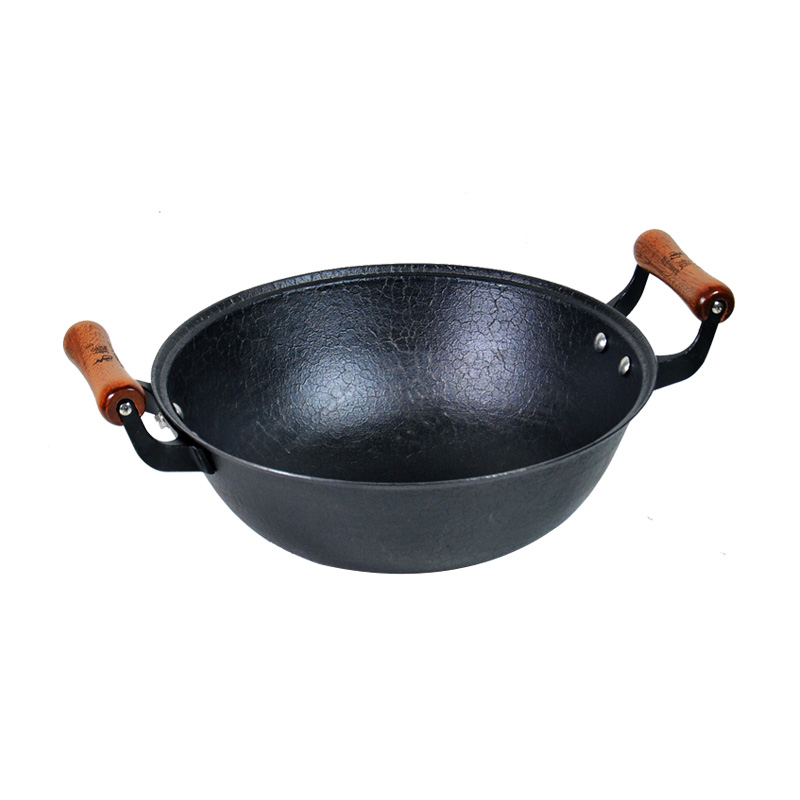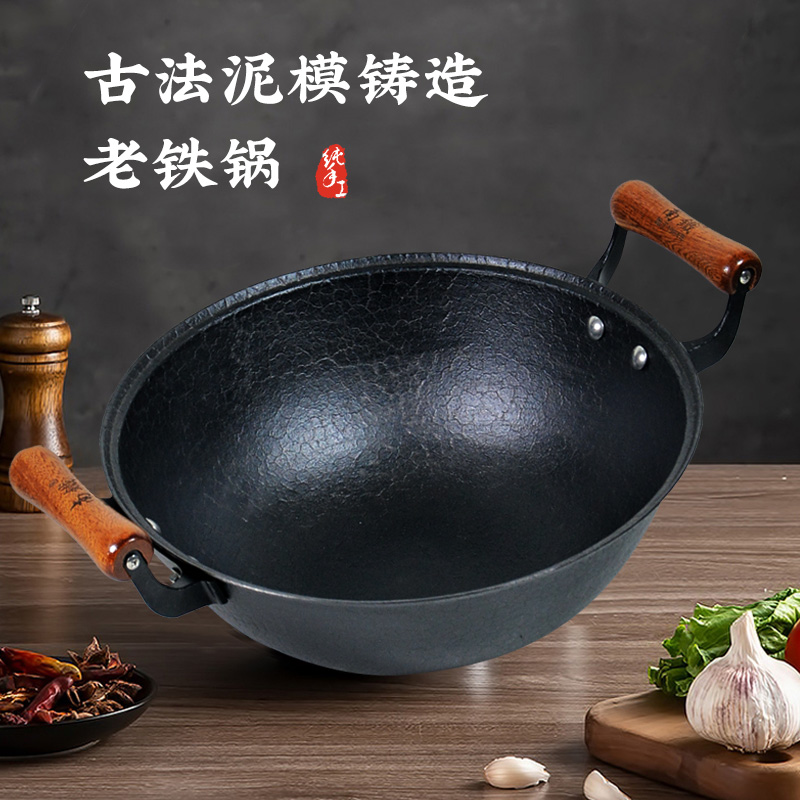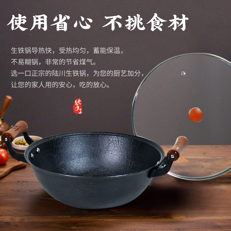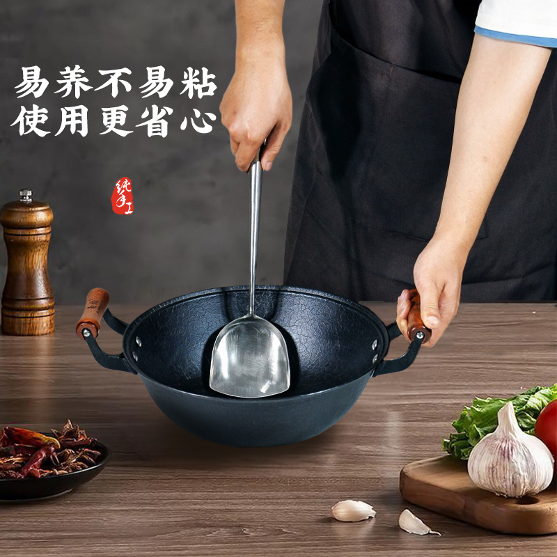 南铁七号迷你双耳家用炒锅无涂层不粘锅燃气电磁炉通用炒锅生铁锅