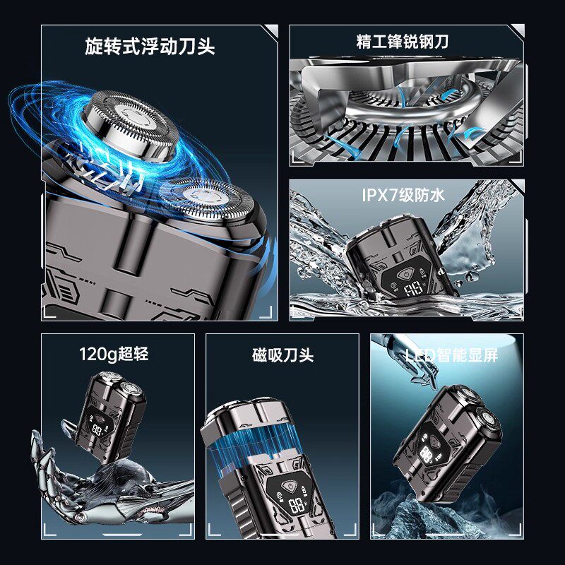 SID超人机甲电动剃须刀男士双刀头全身水洗充电式旋转剃须刀礼物