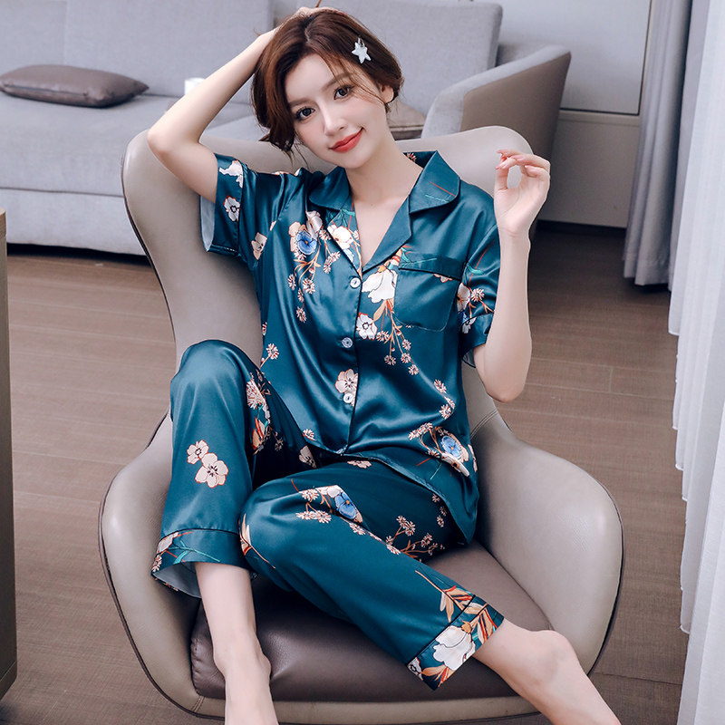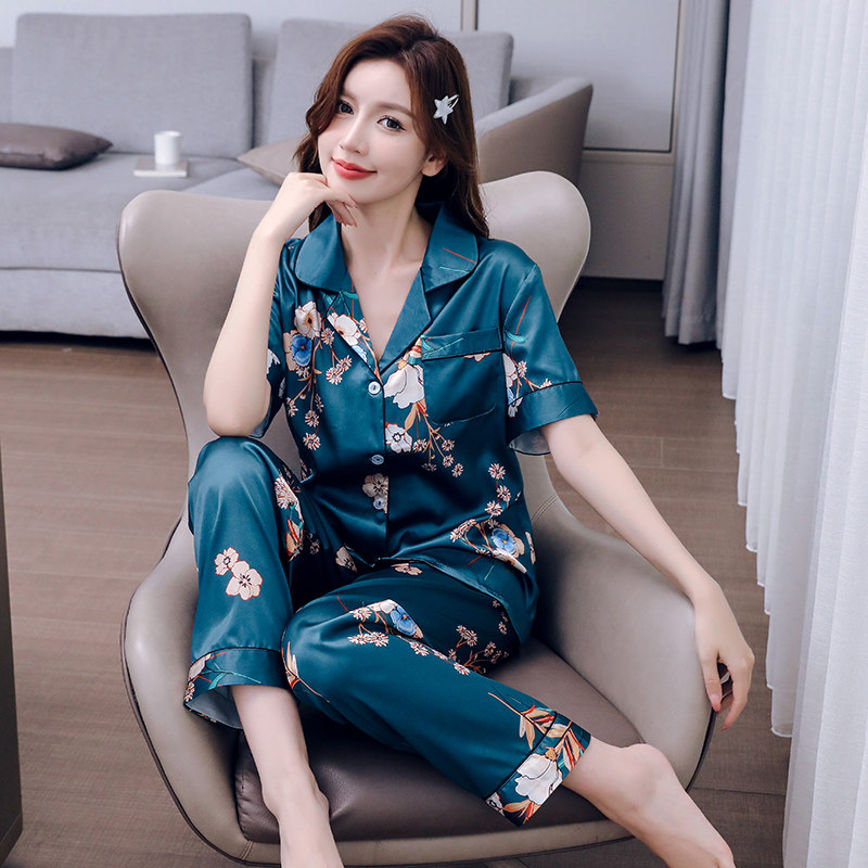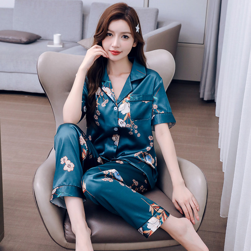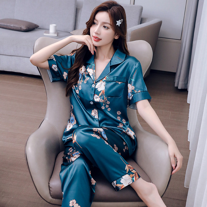 2024年新款冰丝短袖长裤女士睡衣