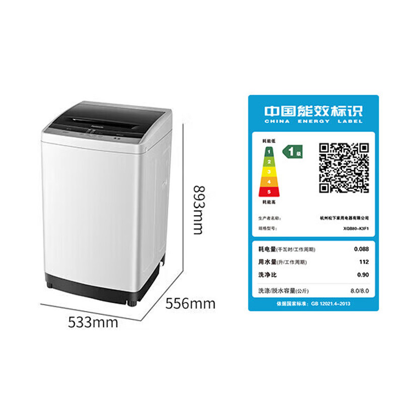 Panasonic/松下 XQB80-K3F1波轮洗衣机8公斤宿舍租房神器桶自洁