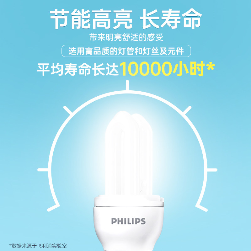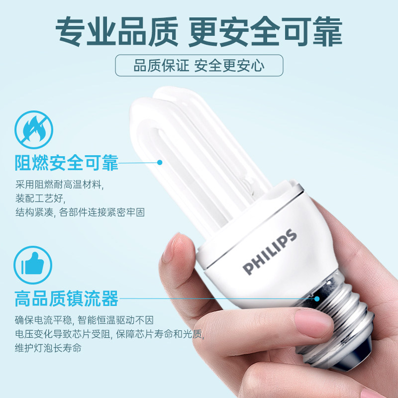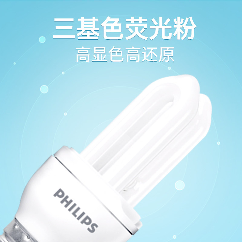 飞利浦节能灯u型e27螺口家用2u灯管螺旋台灯灯泡三基色超亮日光灯