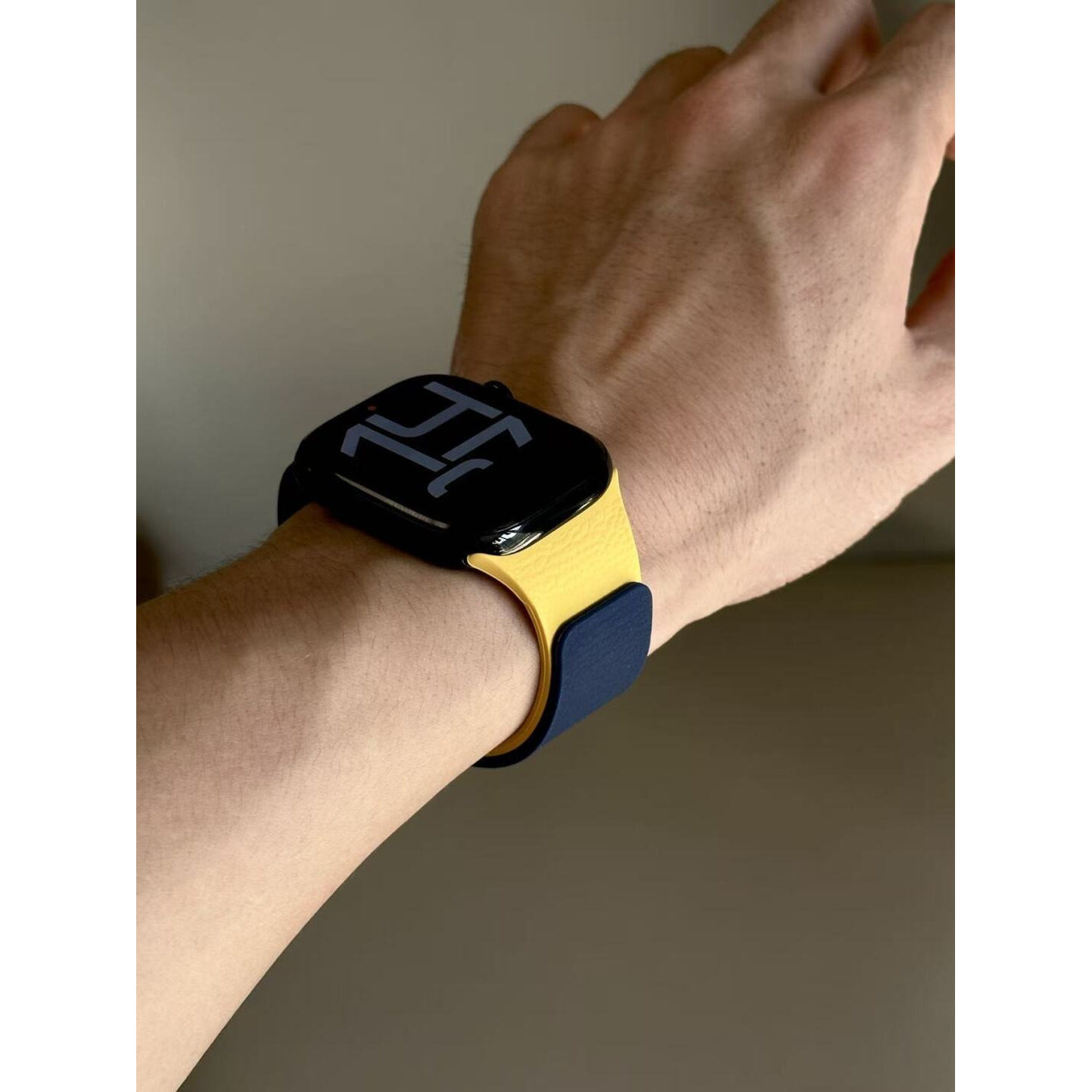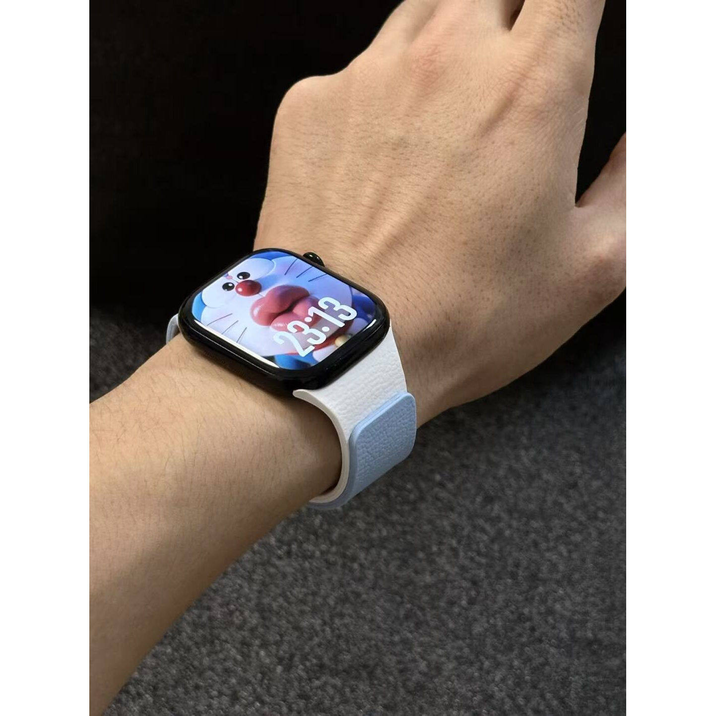 拼色荔枝纹硅胶超强磁吸iWatch11表带适用苹果s10手表s9s8s7女se3