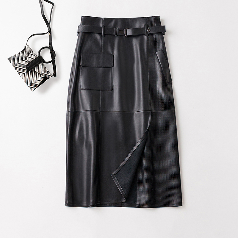 真皮皮裙女中长款2025秋冬新款绵羊皮百搭显瘦高腰包臀开叉半身裙