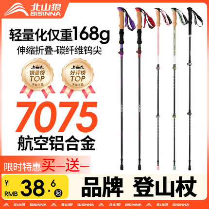 北山狼登山杖手杖专业户外徒步爬山拐杖女款折叠超轻碳纤维伸缩棍