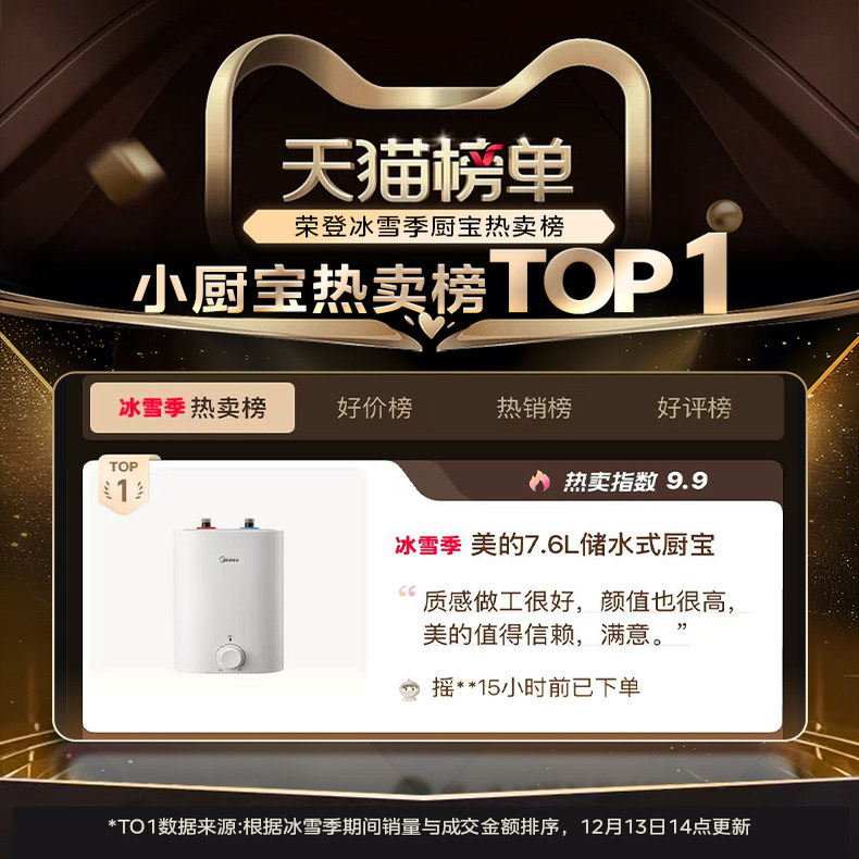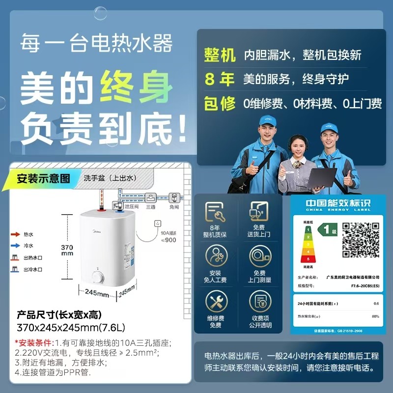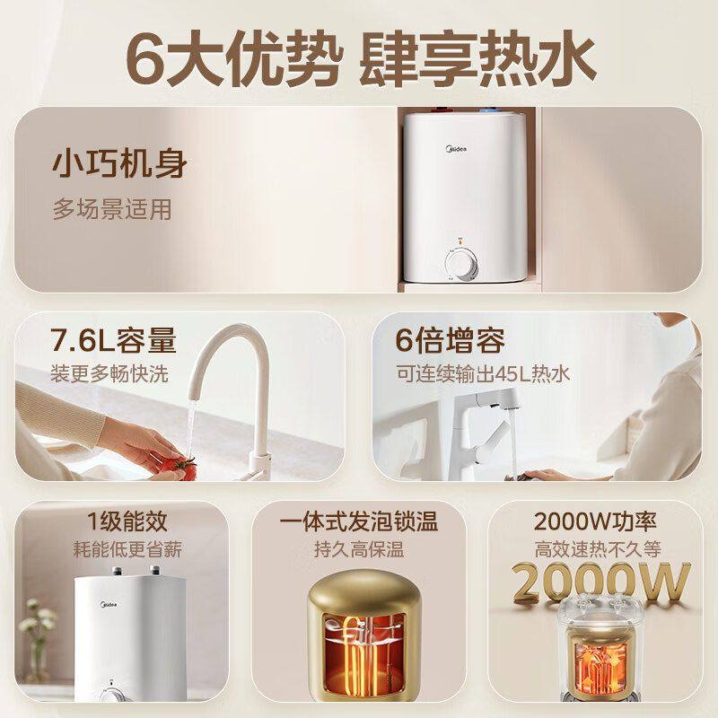 美的小厨宝7.6L储水式热水宝电热家用速热安全厨宝热水器CB5