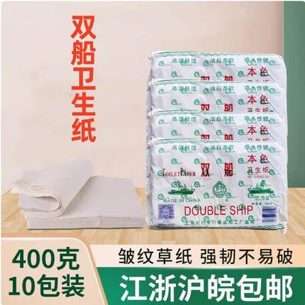 双船草纸手纸平板卫生纸厕纸家用刀切纸400克*10包装江浙沪皖包邮