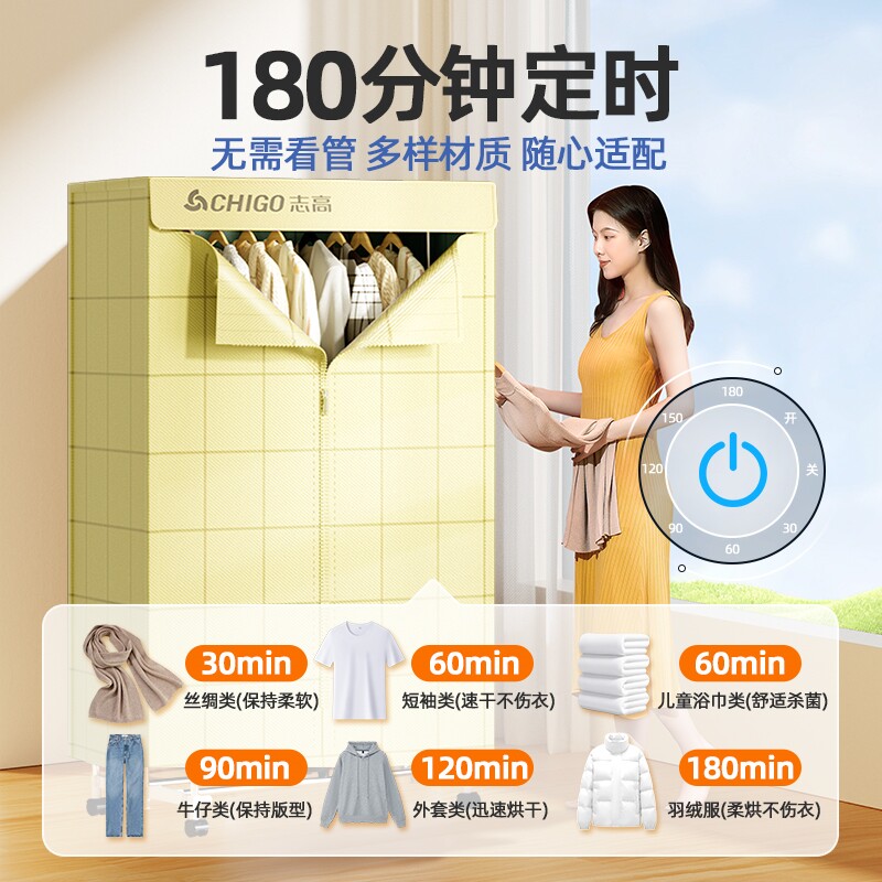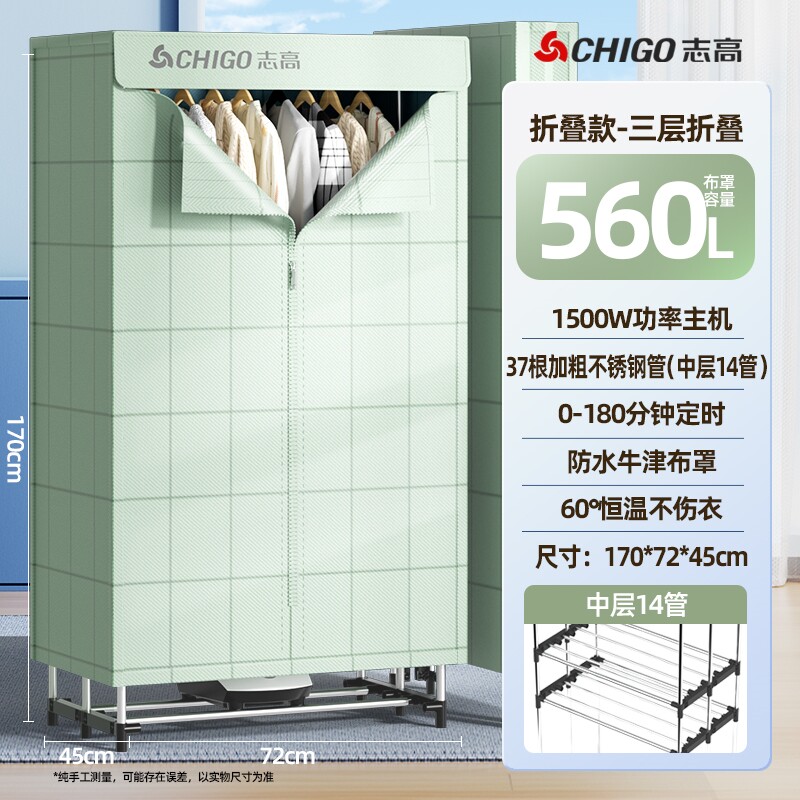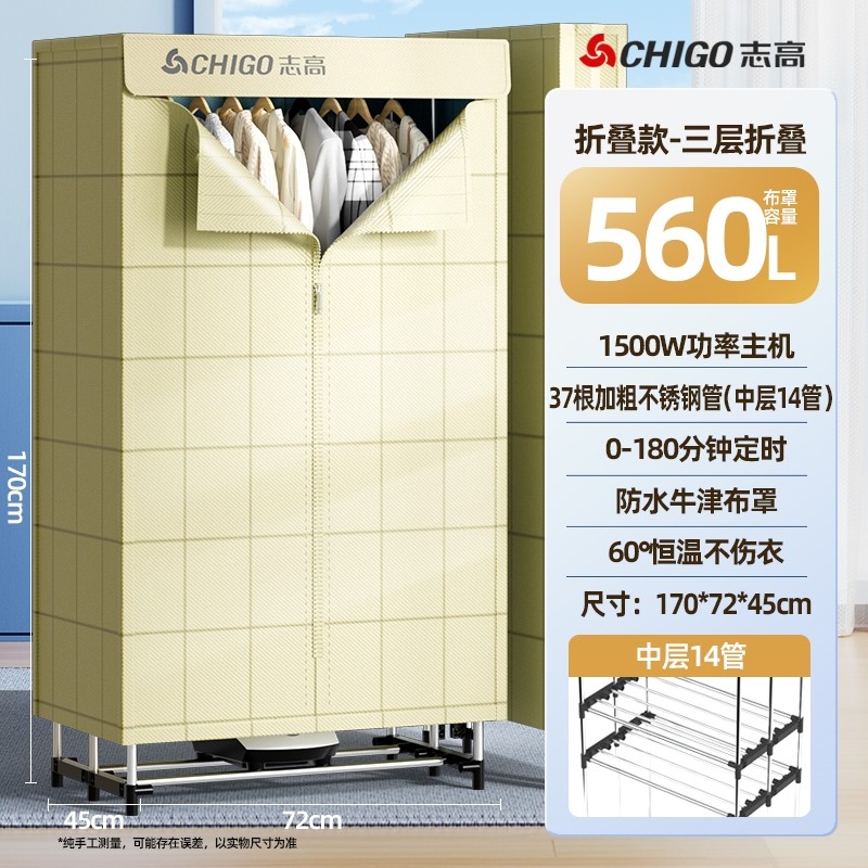 志高烘干机家用干衣机三层折叠大衣服风干哄衣物可折叠衣柜容量烘