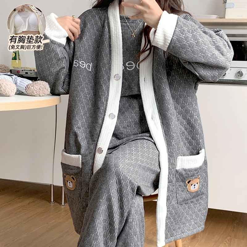 三件套月子服冬季纯棉产后哺乳孕妇睡H衣春秋冬款空气棉家居服产