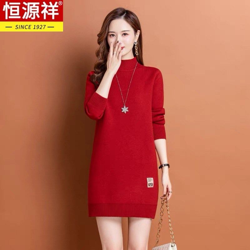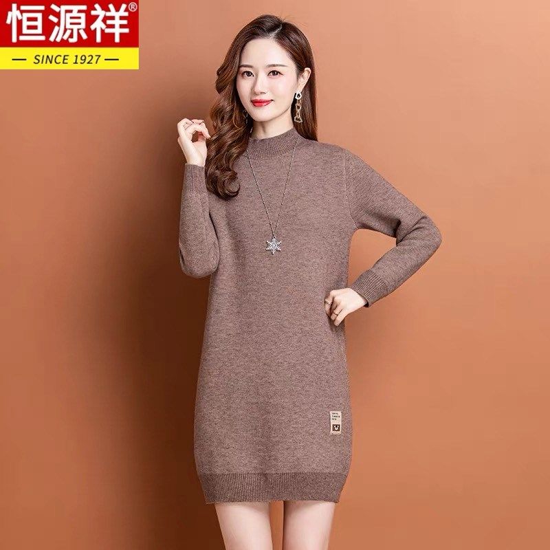 恒源祥秋冬季一体绒加厚毛衣女内搭显瘦百搭保暖中长款羊毛打底衫