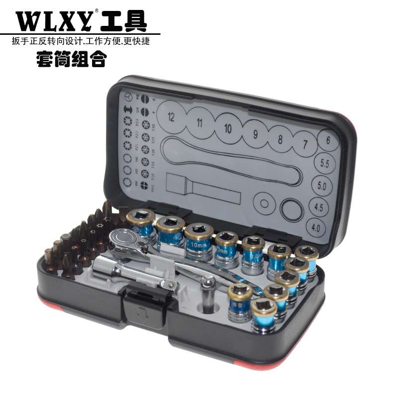 便携迷你多功能棘轮扳手套筒 万能套筒31件套装 汽修维修组合工具