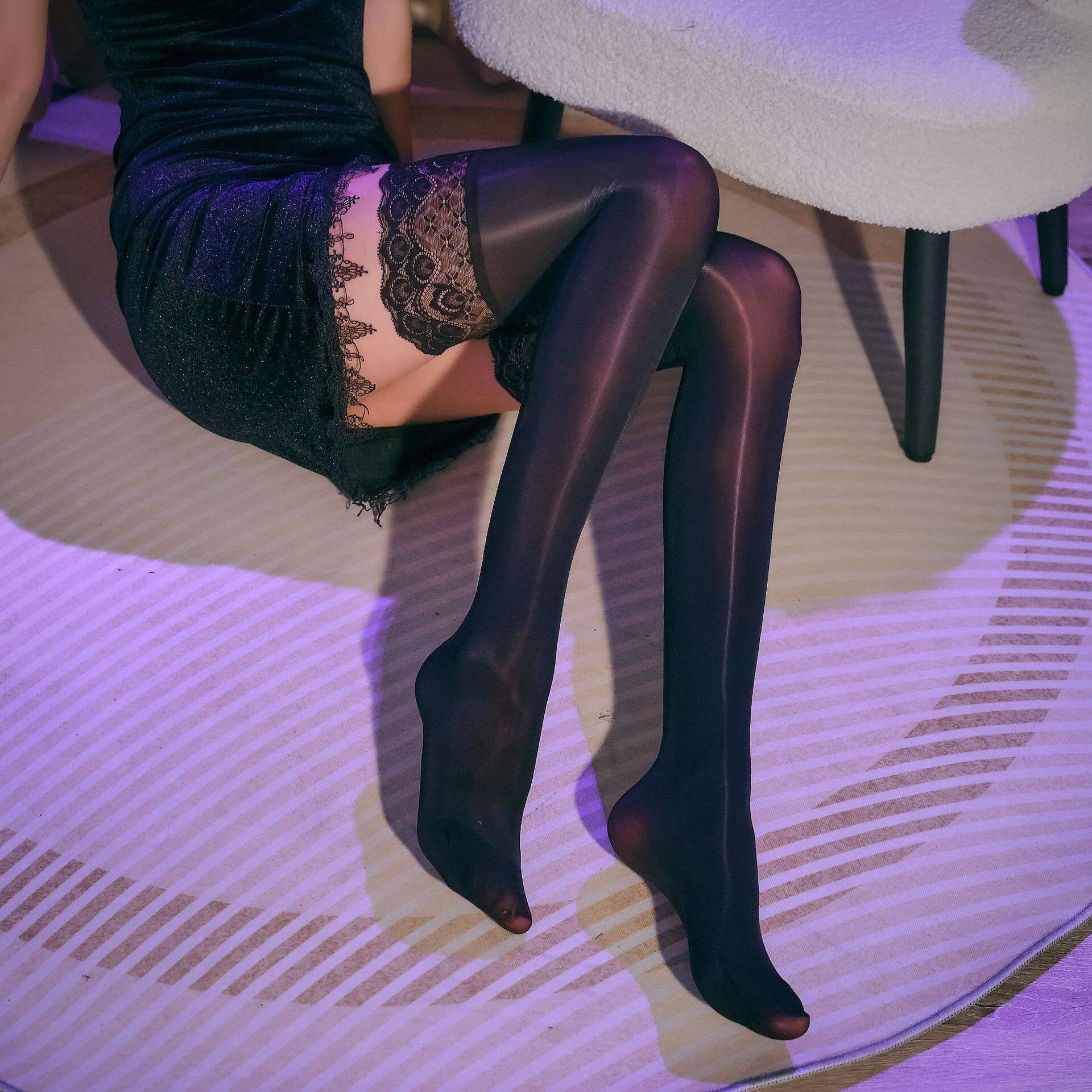大码300斤长筒袜孔雀蕾丝边油亮马油袜硅胶防滑性感丝滑油光美腿